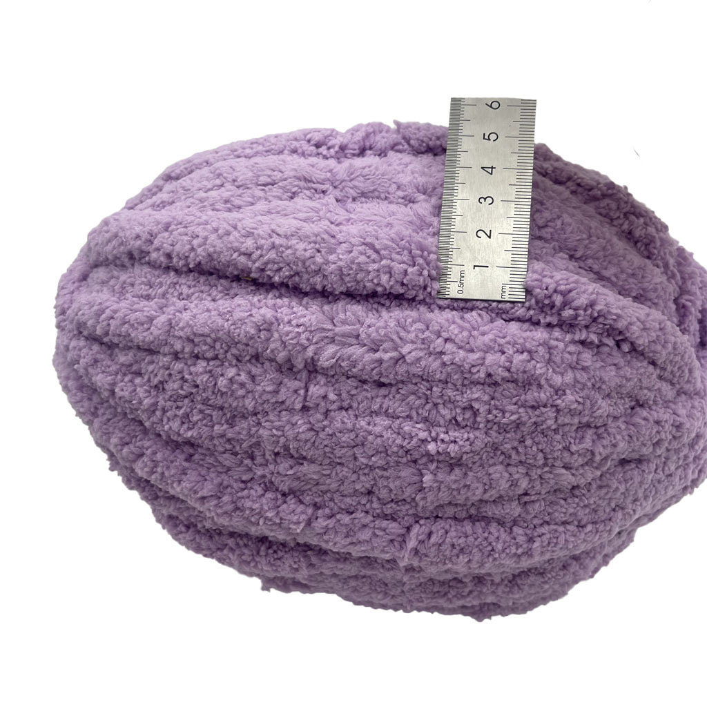 Tämä 100 % polyesterilanka on suunniteltu peittojen valmistukseen, ja siinä on paksu, paksu rakenne ja jääraita. Kokonaan polyesteristä koostuva materiaali tarjoaa tasaisen suorituskyvyn ja kestävyyden. Jokaisen pallon yksikköpaino on 250 grammaa, mikä vastaa noin 27 metrin pituutta, mikä määrittelee sen suuren tiheyden ja raskaan luonteen. Tämä erityinen paino-pituussuhde osoittaa alhaista käyttömäärää, mikä johtaa tilavaan kankaaseen neulottua tai kudottua. "Jääraita" -tekstuuri tarjoaa visuaalisen ulottuvuuden valmiille tekstiilituotteille. Sen koostumus ja fysikaaliset ominaisuudet tekevät siitä sopivan sovelluksiin, joissa vaaditaan tiheää, teksturoitua kangasrakennetta. Tämä lanka toimitetaan tukkuvalmistuksen yhteydessä, mikä vastaa volyymituotannon tarpeisiin.