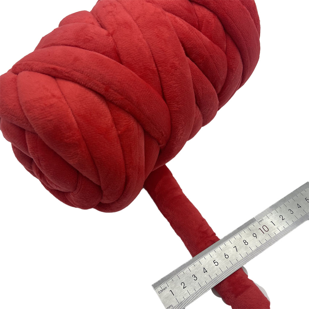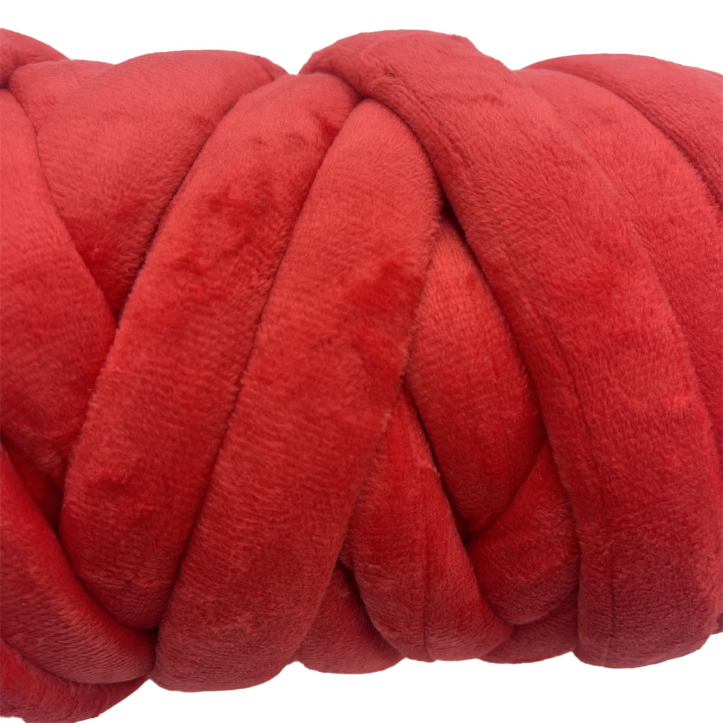 Tämä tuote on tukkumyynnissä valmistettu polyesteri fancy lanka, joka on suunniteltu erityisesti sormella neulomiseen. Lanka on rakennettu samettiputkeksi, jonka halkaisija on yhtenäinen 2 cm, mikä antaa sille merkittävän kolmiulotteisen muodon. Sen koostumus on sekoitus polyesteriä ja puuvillaa, jossa yhdistyvät polyesterin rakenteellinen vakaus ja kimmoisuus sekä puuvillan luonnollinen kosketus. Tämä materiaaliyhdistelmä edistää langan määriteltyä muotoa ja kosketusominaisuuksia. Esimuotoiltu putkimainen rakenne helpottaa sormineulontaprosessia, mikä mahdollistaa teksturoitujen kankaiden ja tarvikkeiden tehokkaan luomisen ilman perinteisiä työkaluja. Sen mitat ja rakenne tekevät siitä sopivan tilavien ja pehmeiden tuotteiden valmistukseen.