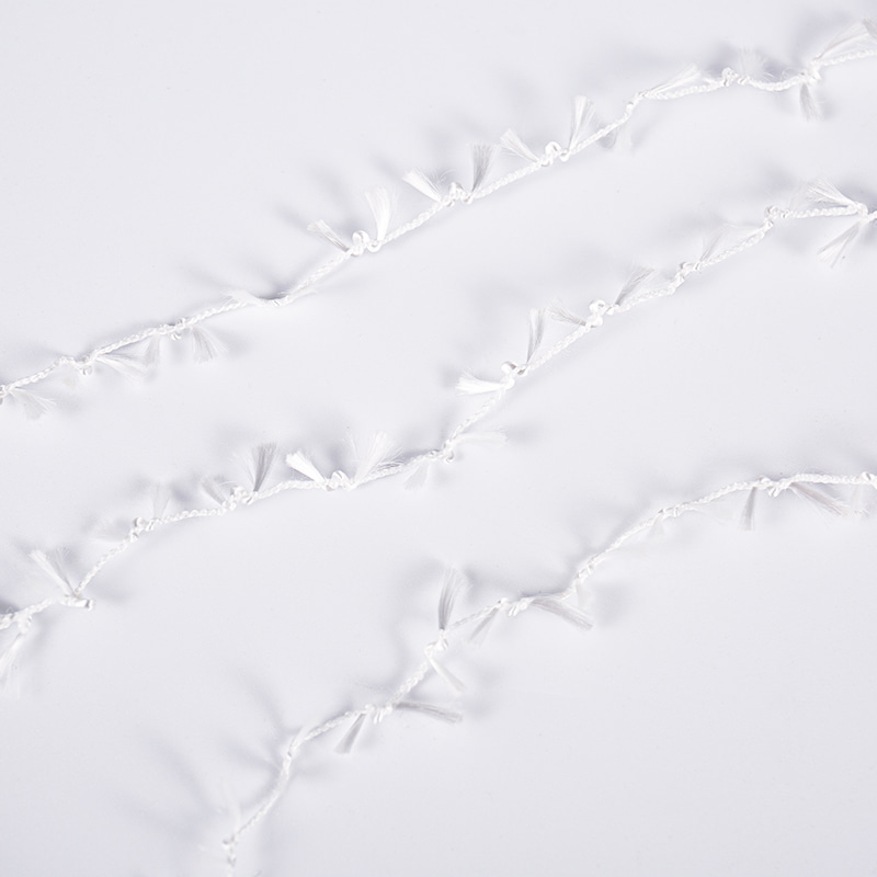 Koristeellinen perhoslanka huivipusero Neulomiseen yhdistää taitavasti hienoja perhoskuvioita lankaan. Erikoiskäsittelyn ansiosta perhosen muoto on todenmukainen ja siinä on vahva kolmiulotteinen tunne, joka tuo kankaaseen kerrostetun visuaalisen vaikutelman. Koristeellinen perhoslanka huivipuseroneulomiseen on valmistettu 100 % polyesterista. Polyesterikankailla on korkea elastinen palautus ja mittapysyvyys, eivätkä ne ole helppo rypistyä, minkä ansiosta huivit ja neuleet voivat palauttaa nopeasti alkuperäisen muotonsa käytön ja pesun jälkeen, mikä vähentää silityksen vaivaa. Polyesterikuidulla on erinomainen UV-kestävyys, joten polyesterilangasta valmistetut huivit ja neuleet eivät ole helppoja haalistua, ja ne säilyttävät kirkkaat värit, vaikka ne olisivat pitkään auringossa. Koristeellinen perhoslanka huiville Pusero Knitting käyttää perhoslangan ainutlaatuista kauneutta kudomaan huivin, joka on sekä lämmin että muodikas, mikä tekee sinusta huomion, olipa kyseessä sitten päivittäinen matka tai treffit.