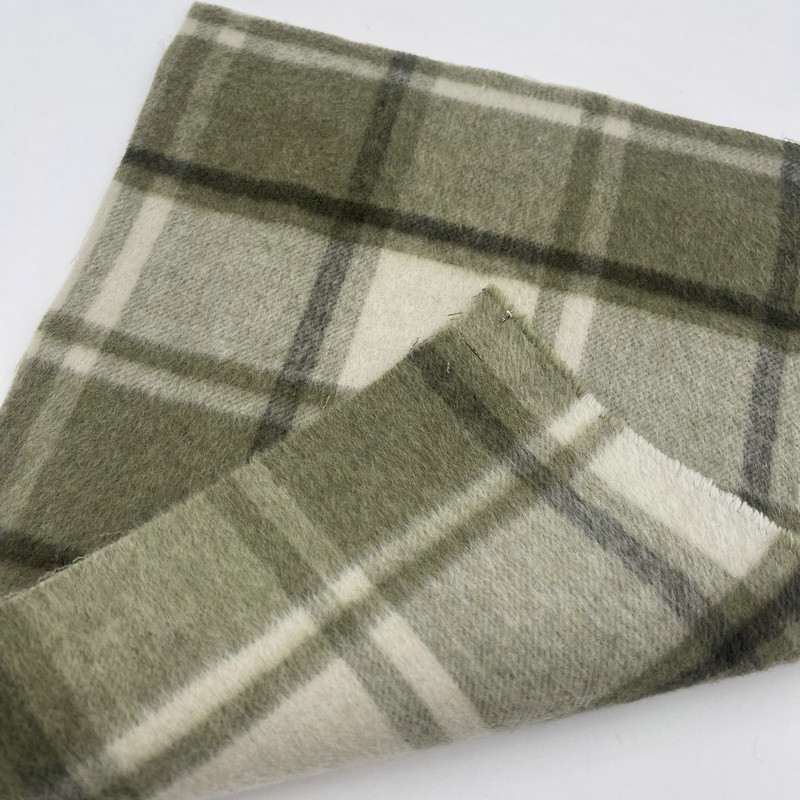Tämä tuote, jonka nimi on ZZH25001, on paksu kudottu tekstiili, joka koostuu 30 % villasta ja 70 % muista kuiduista. Kun massa pinta-alayksikköä kohti on 900 g/m, materiaalilla on huomattava tiheys ja paino. Pinnalla on vihreä ruudullinen kuvio, jonka varjovaikutelma on luotu erityisillä kudontatekniikoilla. Tämä rakennusmenetelmä tuottaa kerrostetun visuaalisen syvyyden ruudukkomuodostelmaan. Villakuitujen sisällyttäminen sekoitukseen vaikuttaa kankaan lämmönsäätöominaisuuksiin. Nämä tekniset tiedot johtavat raskaaseen kudotuun kankaaseen, joka sopii strukturoituihin vaatteisiin, joissa vaaditaan selkeää rakennetta ja huomattavaa läsnäoloa.