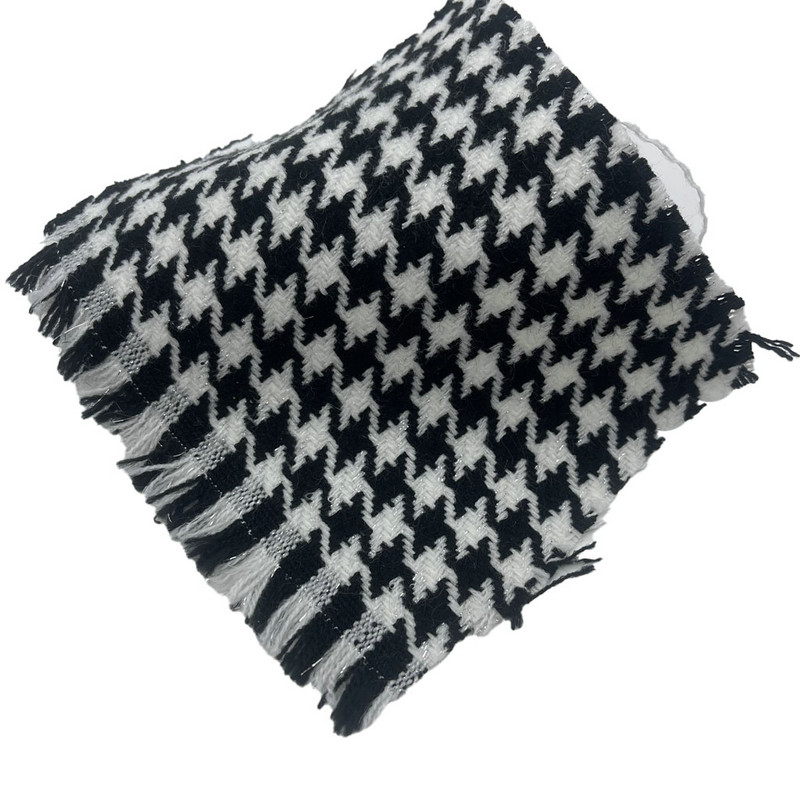 Tämä kangas on jacquard-tweed-tekstiiliä, joka koostuu 97 % akryylista ja 3 % hopealangasta ja jonka massa pinta-alayksikköä kohti on 250 gsm. Siinä on mustavalkoinen koiranhammaskuvio, joka on integroitu metallielementteihin jacquard-kudontaprosessin aikana. Akryylipohja antaa rakenteellista yhtenäisyyttä ja värin säilyvyyttä, kun taas hopeanvärinen lanka tuo kuvioon valoa heijastavia ominaisuuksia. Tämä rakenne luo kankaan, jossa on määritellyt geometriset kuviot ja pinnan kontrasti. Määritelty paino ja koostumus lisäävät materiaalin kestävyyttä ja helppohoitoisuutta. Nämä tekniset ominaisuudet tekevät tästä jacquard-tweedistä soveltuvan verhoiluprojekteihin, joissa vaaditaan kuvioiden näkyvyyttä ja toiminnallista suorituskykyä.