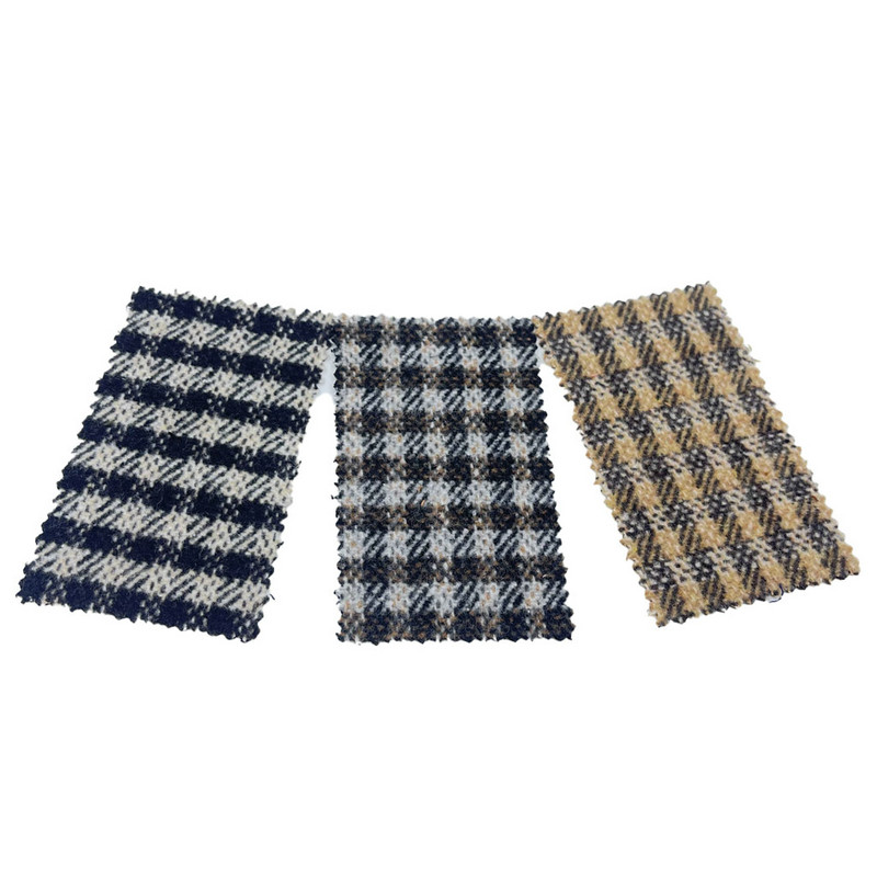 Tämä artikkeliksi 3811 merkitty kangas on tweed-tekstiiliä, joka koostuu 10 % villasta ja 90 % muista kuiduista. Sen massa pinta-alayksikköä kohti on 550 g/m, joten se on raskas rakenne. Ruskeassa pinnassa on ruutukuvio, joka on integroitu toimikkaan kudospohjaan, mikä luo vinoviivoja ruudukkomuodostelman alle. Kankaalle on levitetty harjausviimeistely, joka nostaa kuidut ja luo pehmeämmän pintarakenteen. Tämä tekniikka muuttaa kankaan tuntoominaisuuksia säilyttäen samalla toimikaskudoksen rakenteellisen eheyden. Tekniset tiedot johtavat materiaaliin, jossa on yhdistetty visuaalinen kuviointi ja parannettu pinnan käsituntuma, mikä tekee siitä soveltuvan takin valmistukseen, jossa vaaditaan sekä kestävyyttä että tuntomukavuutta.