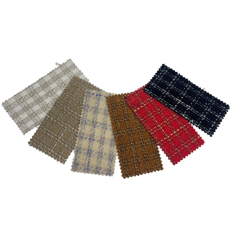 Tämä artikkeliksi 3764 merkitty kangas on kudottu tweed-tekstiili, joka koostuu 100 % muista kuiduista. Sen massa pinta-alayksikköä kohti on 560 g/m, joten se on keskiraskasta. Pinnalla yhdistyy ruutukuvio ja harjattu chenillerakenne. Tämä viimeistelytekniikka nostaa kuidut chenillelangoista luoden pehmeän pintarakenteen. Sekkimalli muodostuu värillisten lankojen vuorovaikutuksesta kudontaprosessissa säilyttäen geometrisen tarkkuuden. Nämä valmistustekniikat johtavat kankaaseen, jossa on sekä visuaalinen kuvion määritelmä että erottuva kosketuslaatu. Tämä kudottu tweed sopii naisten vaatteisiin, joissa vaaditaan pinnan kiinnostavuutta ja rakenteellista eheyttä.