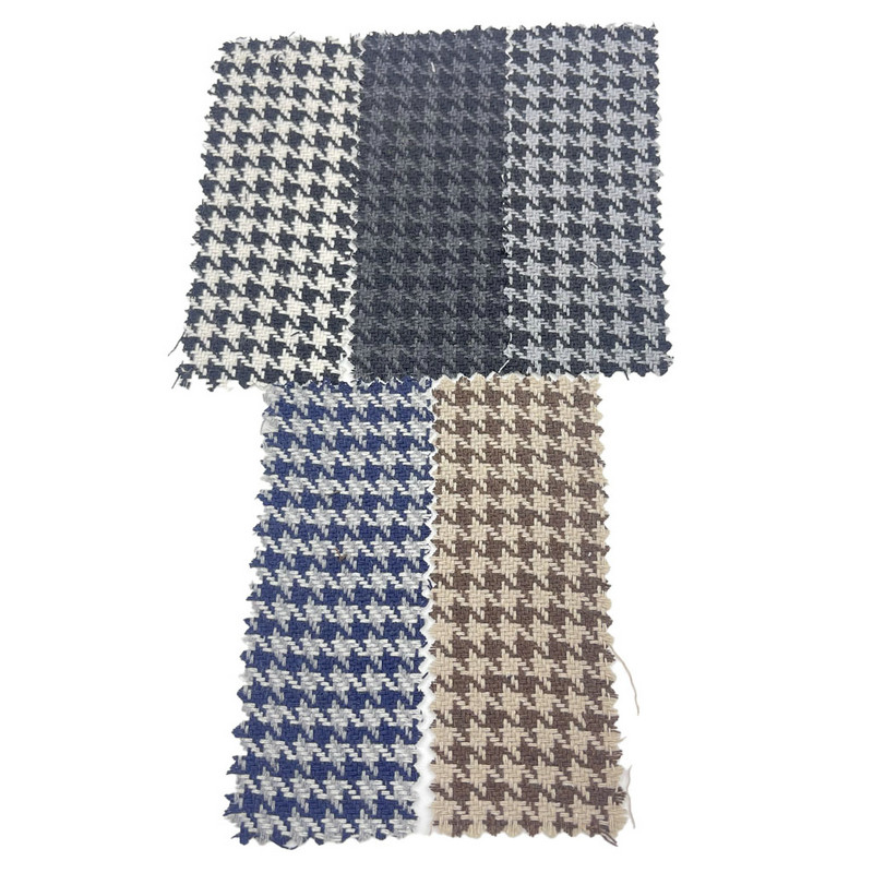 Tämä artikkeliksi 3946 merkitty kangas on kudottu tekstiili, joka koostuu 10 % villasta ja 90 % muista kuiduista. Sen massa pinta-alayksikköä kohti on 450 g/m, joten se on keskipainoinen rakenne. Tummanharmaassa pinnassa on koiranhammaskuvio, joka on luotu tietyllä kudontatekniikalla, joka tuottaa rikkinäisiä ruutuja tai nelikärkisiä muotoja. Tälle klassiselle geometriselle motiiville on ominaista sen toistuva kontrastivärinen efekti. Villasekoituskoostumus edistää kankaan lämmönsäätelyä ja kimmoisuutta. Nämä tekniset ominaisuudet johtavat materiaaliin, jolla on määrätty kuviointi ja rakenteellinen kestävyys, joten se soveltuu huppareihin, joissa vaaditaan visuaalista kuviointia ja pitkäkestoista suorituskykyä.
