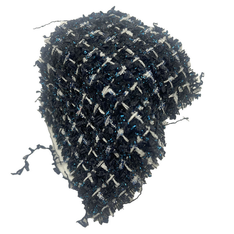 Tämä kangas, jota kutsutaan artikkeliksi 23511, on tweed-ruututekstiili, joka koostuu 86 % polyesterista ja 14 % nailonista. Sen massa pinta-alayksikköä kohti on 340 gsm, joten se on kevyt rakenne. Tummansinisessä pohjassa on sininen metallilanka ruutukuvion sisällä, mikä luo kontrastisen visuaalisen vaikutelman vaihtelevan valon heijastuksen kautta. Polyesteri-nailon-seos tarjoaa mittavakauden ja rakenteellisen yhtenäisyyden. Metalliset elementit lisäävät valon kanssa interaktiivisia ominaisuuksia kudottulle pinnalle. Nämä tekniset tiedot tekevät tästä tweed-kankaasta soveltuvan naisten vaatteisiin, joissa vaaditaan määriteltyä kuviointia ja hienovaraista pinnan vaihtelua.