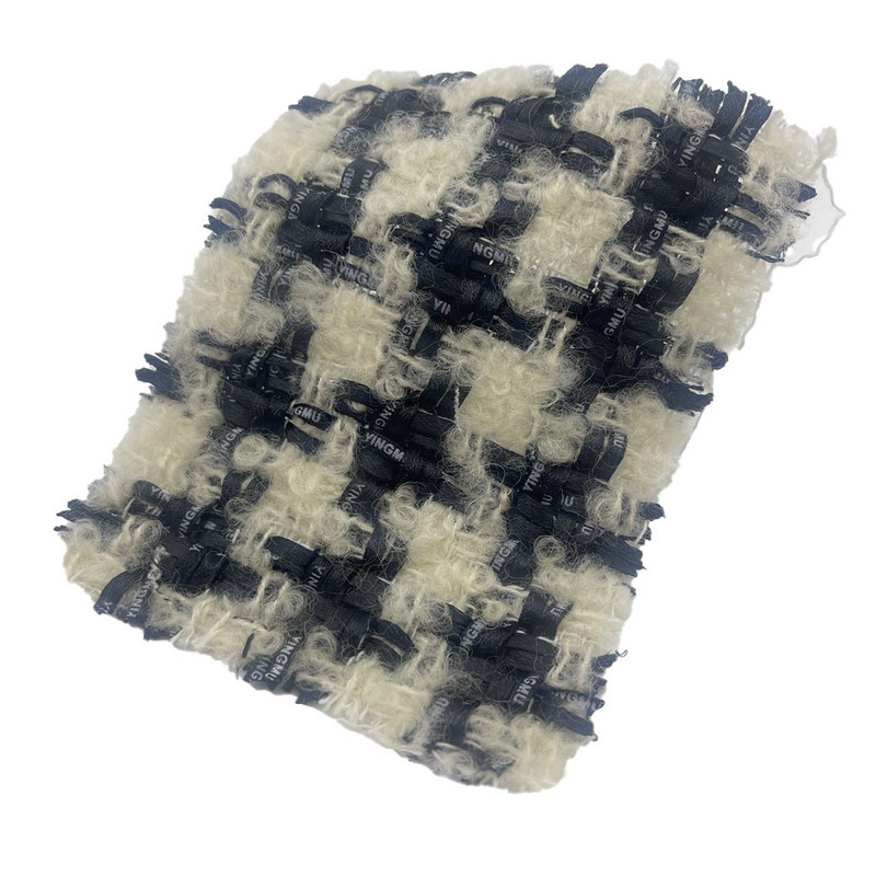 Tämä kangas, jonka nimi on artikkeli 23548, on villainen tweed-tekstiili, joka koostuu 38 % polyesterista, 36 % villasta ja 26 % puuvillasta. Sen massa pinta-alayksikköä kohti on 410 gsm, joten se on keskipainoinen rakenne. Luonnonvalkoinen ja musta värimaailma on kudottu ruudulliseen kuvioon, jota tehostaa pintaharjaustekniikka, joka luo kohotetun nallemaisen tekstuurin. Tämä viimeistelyprosessi muodostaa tiiviin, lyhyen nukkapinnan, joka muuttaa kankaan tuntoominaisuuksia. Kuitukoostumus edistää kankaan rakenteellista vakautta ja kosteudenhallintaa. Nämä ominaisuudet tekevät tästä harjatusta tweedistä soveltuvan vaatteisiin, jotka vaativat sekä visuaalisen kuvion määritelmän että erottuvan pintarakenteen.