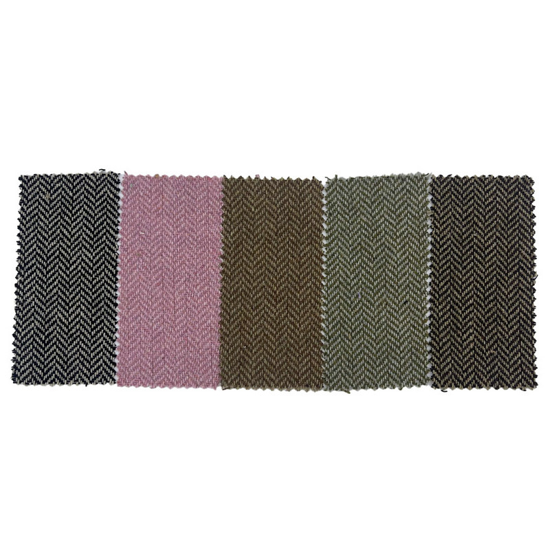 Tämä artikkeliksi 3532 merkitty kangas on jacquard-tekstiiliä, joka koostuu 20 % villasta ja 80 % muista kuiduista. Sen massa pinta-alayksikköä kohden on 500 g/m, joten se on rakenteeltaan keskiraskas. Vaaleanpunaisessa pinnassa on jacquard-kudontaprosessilla luotu kalanruotokuvio, joka muodostaa tarkat V-muotoiset kuviot kankaan poikki. Tämä tekniikka tuottaa johdonmukaisen suuntautuvan tekstuurin, jossa on määritelty geometrinen toisto. Villasekoituskoostumus edistää kankaan lämpöominaisuuksia ja muodon säilymistä. Nämä tekniset ominaisuudet johtavat materiaaliin, jolla on rakenteellinen tiheys ja kuvion selkeys, joten se soveltuu housuihin, joissa vaaditaan sekä visuaalista määritelmää että mittojen vakautta.