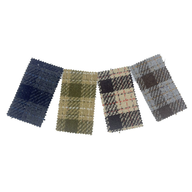 Tämä artikkeliksi 4144 merkitty kangas on jacquard-tweed-tekstiiliä, joka koostuu 10 % villasta ja 90 % muista kuiduista. Sen massa pinta-alayksikköä kohti on 550 g/m, joten se on raskas rakenne. Vihreässä pinnassa yhdistyvät toimikas kudospohja ja raidalliset ruudulliset kuviot, jotka on luotu jacquard-prosessilla, joka yhdistää lineaariset nauhat ruudukkomuodostelmiin. Tämä tekniikka tuottaa risteäviä kuvioita tyypillisen diagonaalisen toimikaskuvion päälle. Villaseoskoostumus edistää kankaan mittapysyvyyttä ja kestävyyttä. Nämä tekniset ominaisuudet johtavat materiaaliin, jossa on monikerroksinen kuviointi ja rakenteellinen tiheys, joten se soveltuu vaatteisiin, joissa vaaditaan monimutkaisia suunnitteluelementtejä ja kankaan kimmoisuutta.